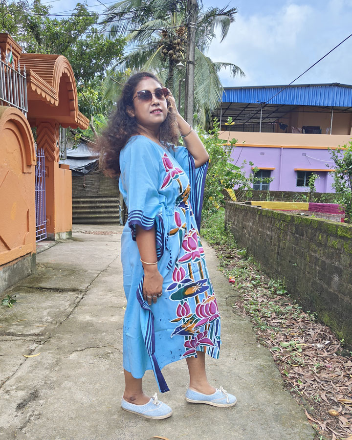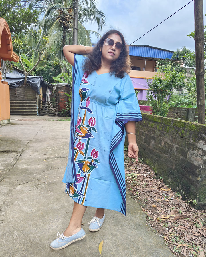 Hand Batik Pure Cotton Kaftan – Lotus (Sky Blue)