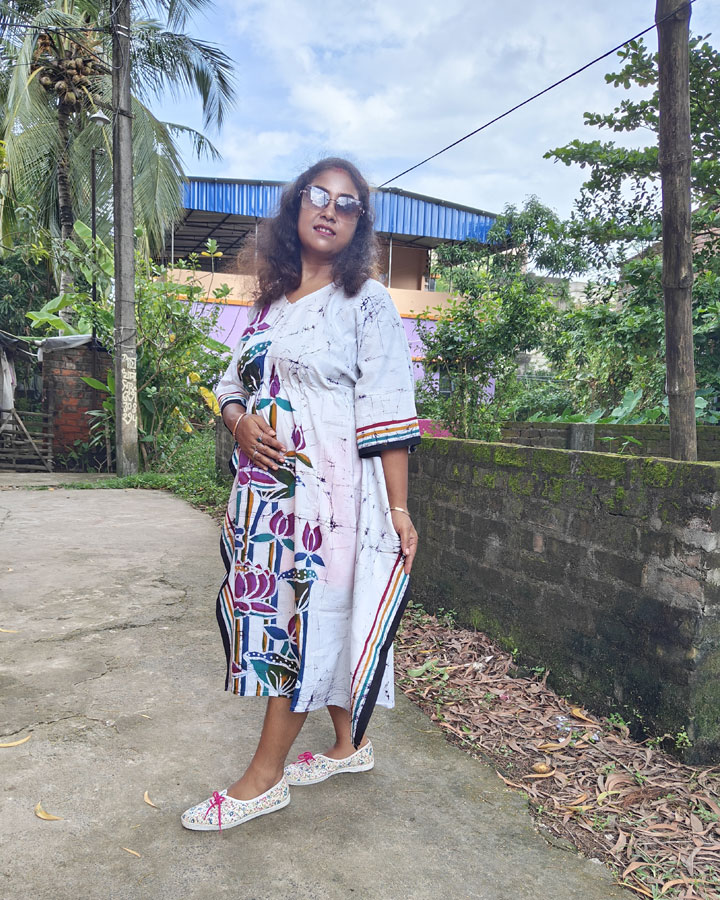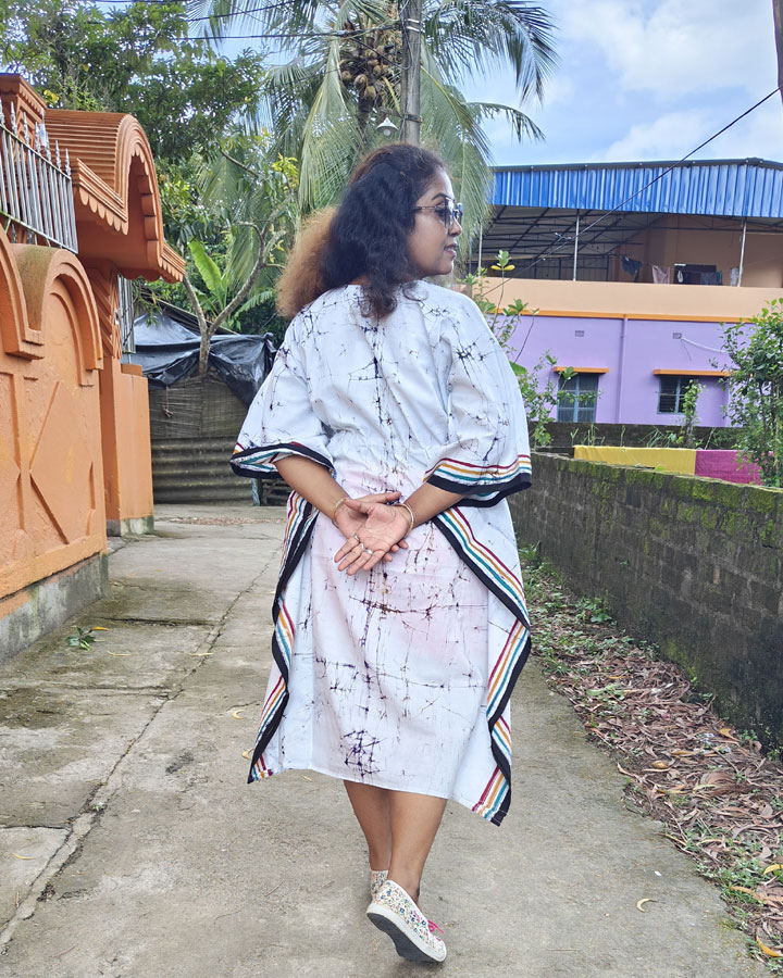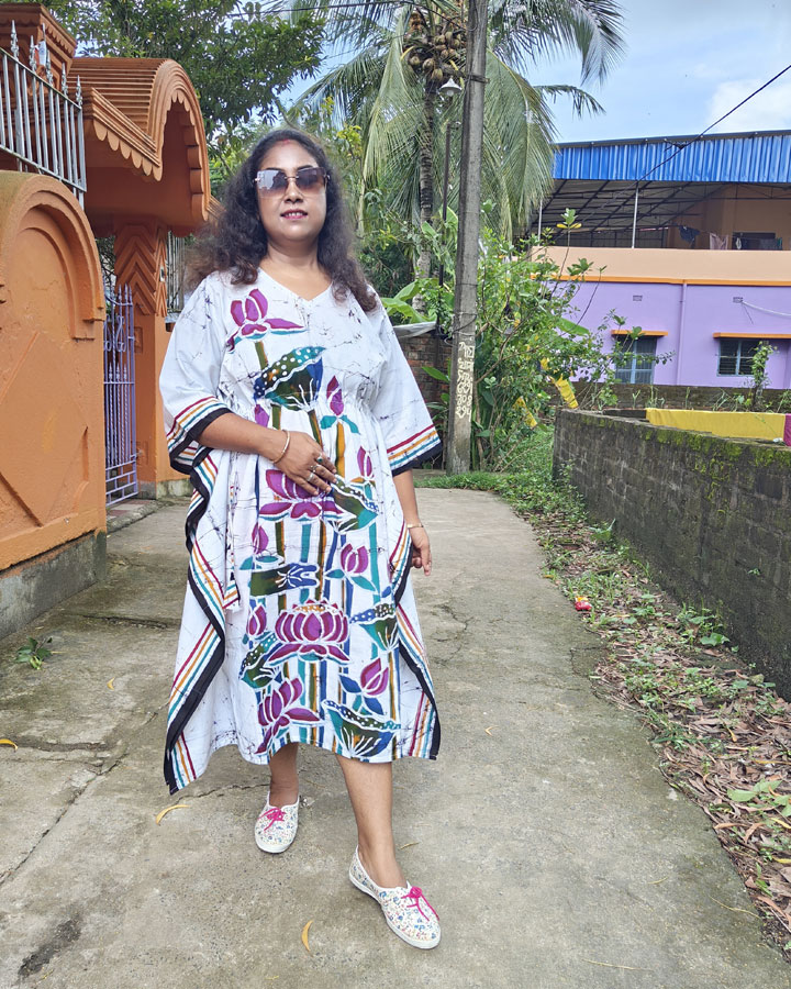 Crafted from premium pure cotton, the kaftan is lightweight, breathable, and comfortable—ideal for year-round wear. Designed for pairings as a flowing dress or a chic kaftan kurti over leggings, this piece blends traditional batik artistry with a modern silhouette—offering both cultural charm and everyday ease.