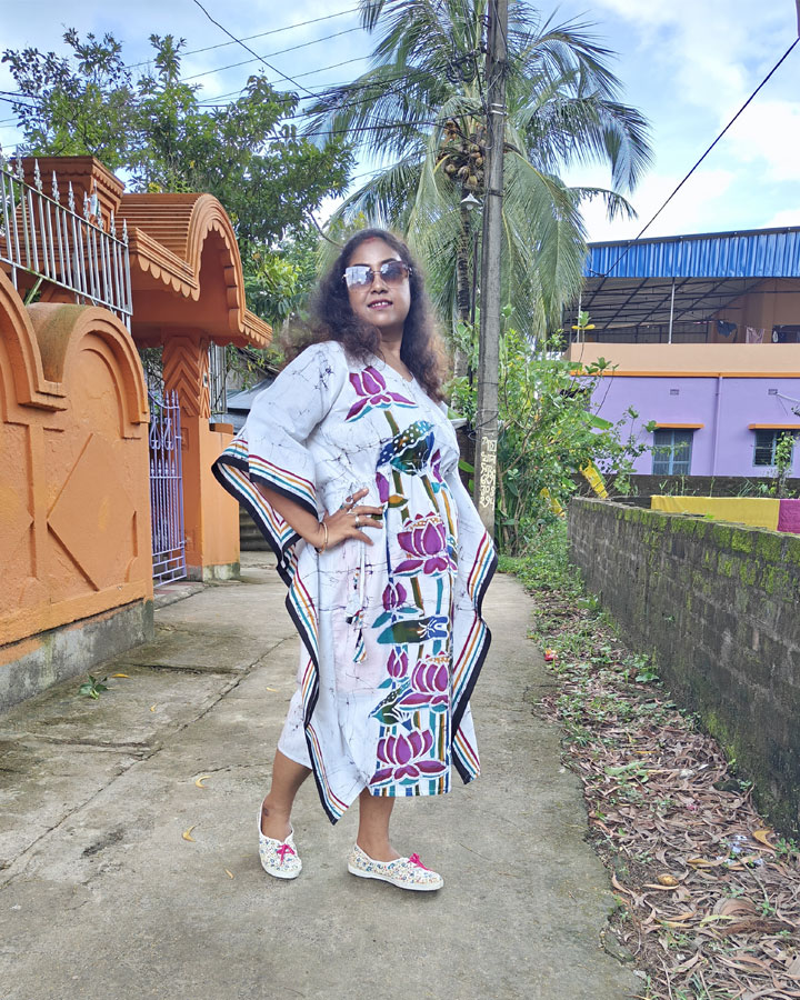 Hand Batik Pure Cotton Kaftan – Lotus (White)